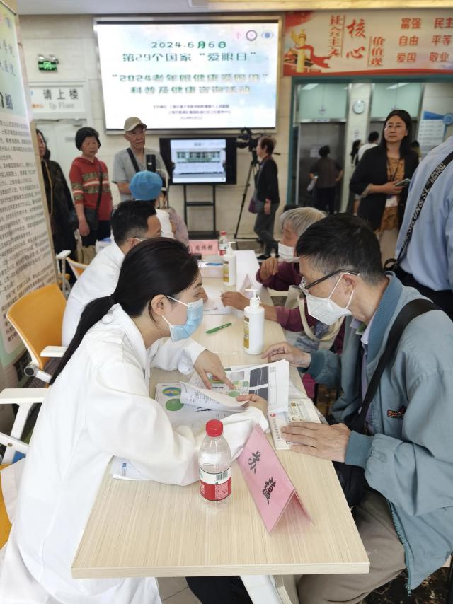 6 月 6 日,迎来了第一名 29 全国“爱眼日”。由上海交通大学医学院附属第九人民医院和豫园街道社区卫生服务中心承办的“ 2024 居民健康讲座暨老年人眼睛健康与眼睛周围的免费门诊活动正在举行。本次活动旨在提高社区老年居民对眼睛健康的重视,普及眼睛健康知识,促进眼睛健康概念的普及。