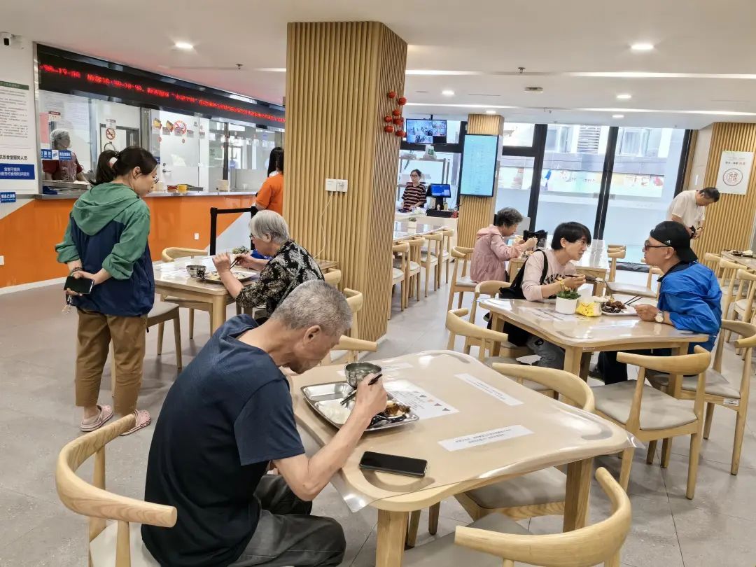 位于南京东路街道“苏河之眸”零距离佳园服务综合体二楼(南苏州路1015号)的“品南东”社区长者食堂。对许多食客来说,最关心的无疑是菜品的品质。食堂表示,菜品会根据季节和居民的需要灵活调整。晚餐时间,将优先选择炸猪排、东坡肉等食堂主要产品,供居民品尝。汤方面,每餐准备一至两道特色汤,如滋补牛肉汤、鲜美骨头汤等,每份独立收费。此外,晚餐期间还特别增加了一系列日常午餐中不常见的小锅菜,每天交替呈现4到6种类型。松鼠鲈鱼、洋葱烤鲫鱼、芦笋虾、龙虾、炸虾等。已经排到菜单上,并根据食客的订单立即制作。