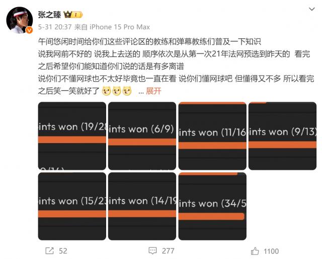 这就要提到张之臻前几天发了一条微博。因为很多粉丝都跑了,张之臻的网前不好。但是现在张之臻有足够的信心,所以他想用一系列自己的网前得分率数据来打脸那些“黑粉”。我喜欢玩家表现出真实的气质,但我想说的是,其实互联网最忌讳的就是“自我认证”。