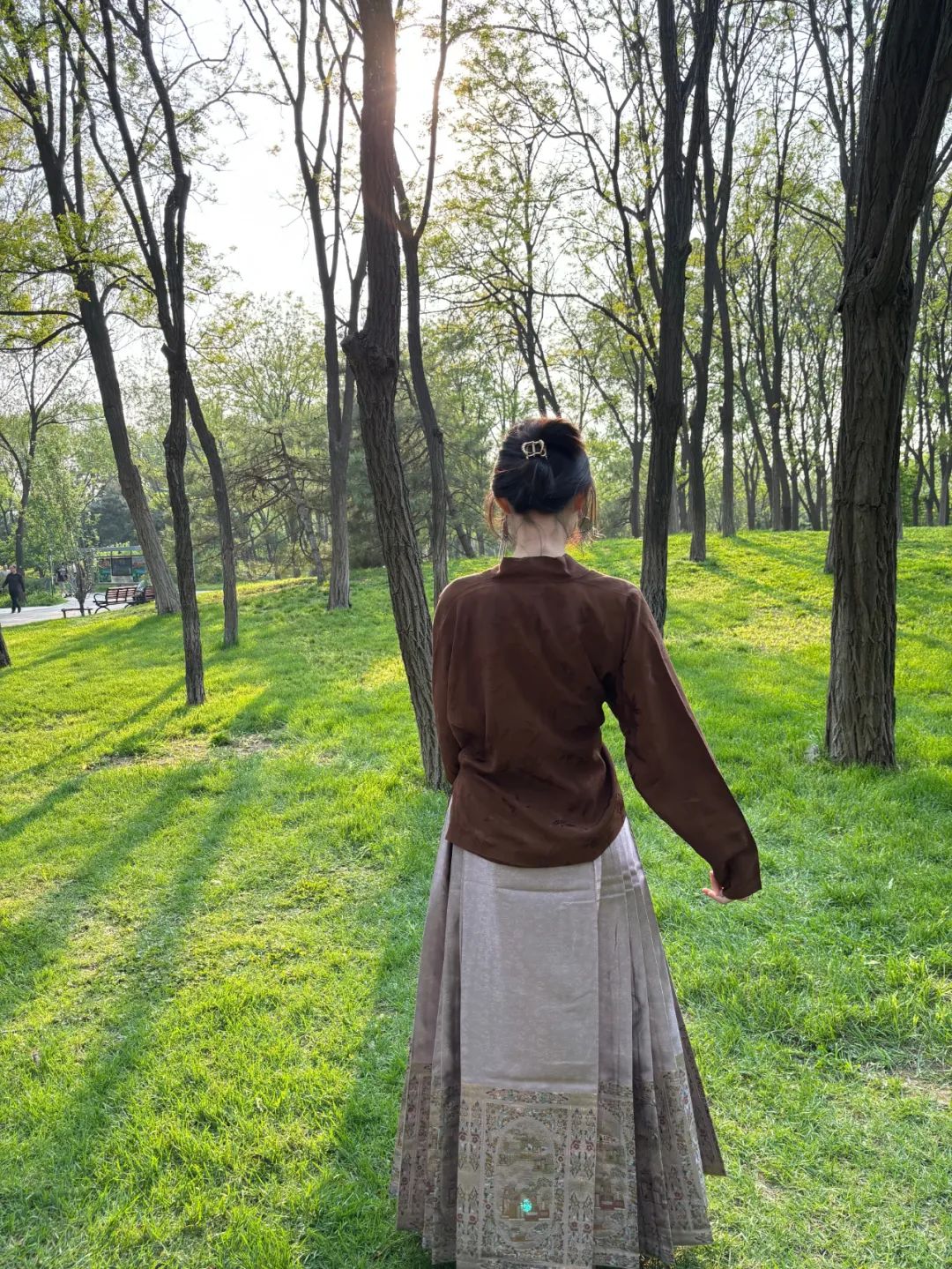 传统的马面裙穿法是“衣服遮住裙子”,即上衣遮住裙子,对身材的容忍度更高。现在流行的“裙子遮住衣服”搭配,就是把上衣绑在裙子上,手动突出腰部曲线。苹果型身材的人穿上会出现腰腹缺陷,而梨型身材则容易因为腰臀比过大而“爆”马面裙的裙子褶皱。