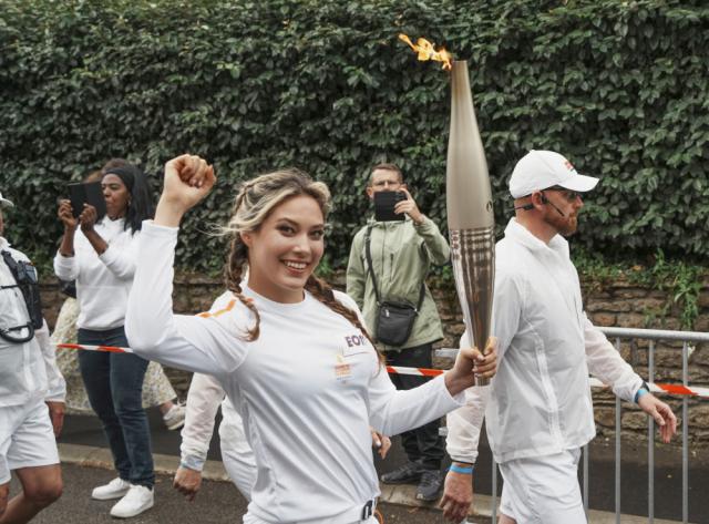 5 日本,巴黎奥运会火炬传递在法国西部大西洋卢瓦尔省继续进行,中国女子自由滑雪者谷爱凌是当天的第一名。 11 号码火炬手参与传递,她也是本届奥运会火炬手中第一位来自中国的现役运动员。