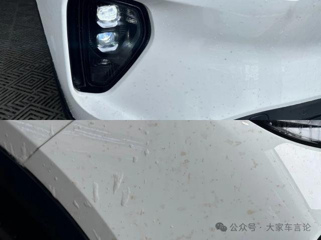 这辆蔚来 ES6,几个表面都覆盖着这种黄色的小树胶果胶。
