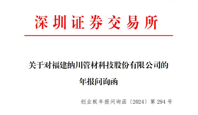 瑞财经 赵盼盼 6 月 4 日本,深交所发布了关于纳川股份年度报告的询证函。