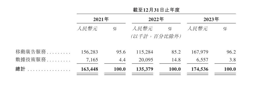 移动广告的收入分别为1.56亿元、1.15亿元和1.68亿元,分别占每年总收入的95.6%、85.2%和96.2%。