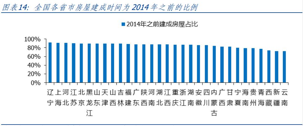 按照《中国人口普查年鉴2020》, 我们国家的楼龄介于 9-23 每年现有住房比例高达 52.93%。众所周知,老旧房屋普遍存在面积小、质量低、配套设施差、物业管理不足等问题,这也刺激了居民更换新房和家具的需求。