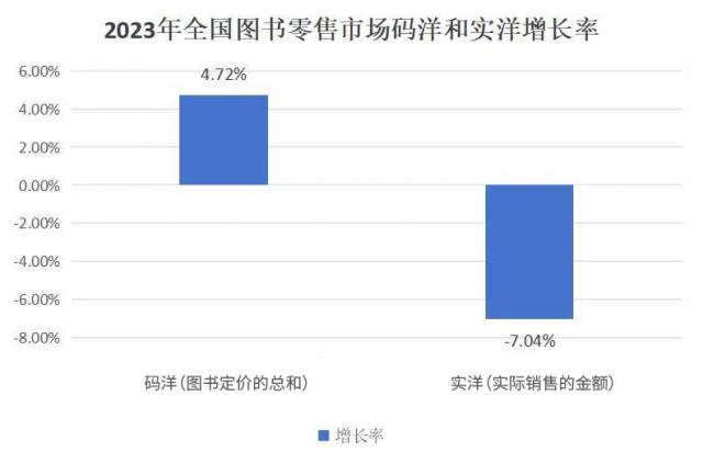 《2023 2023年图书零售市场年度报告显示, 全国图书零售市场码洋(图书定价总和)同比增长 4.72%,但市场实洋(实际销售金额)同比下降 7.04%。