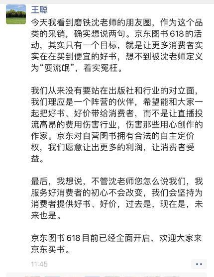 京东图书采销负责人在朋友圈回应。