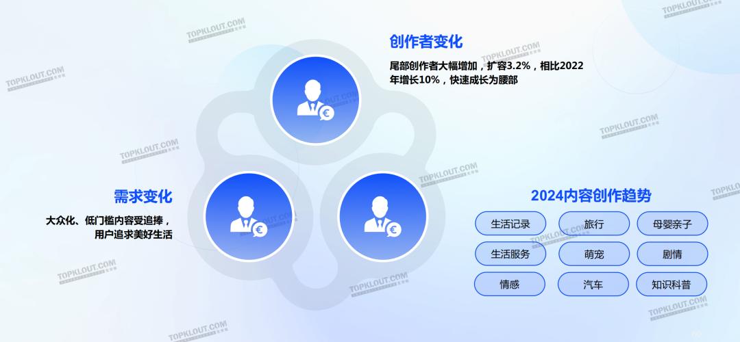 总的来说,在过去的一年里,尾端创作者的比例增加了3.2。%,与2022年相比,增长10%。大众化、低门槛内容受到追捧,用户的日常生活与社交内容有关。他们专注于在各种内容中找到真实的生活,追求轻松快乐的生活。