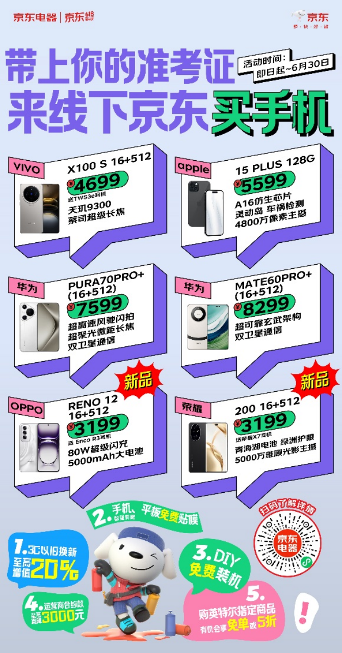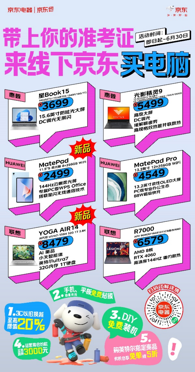 这一年,端午节假期正好高考结束。在经历了人生的“第一次考试”之后,即将踏上新的旅程,购买新的数码设备成为许多孩子的愿望。根据京东电器的说法,很多学生客户早就种草好心仪型号,高考结束后和父母一起进店感受真机,直接付款就拿走了现货。JD.COM电器还以各种专属优惠迎接学生:凭准考证可享受价格暴跌,3C新旧置换增值20%。、DIY免费安装,购买英特尔指定商品有机会享受免费或5折优惠,让学生轻松购买。
