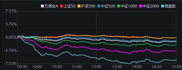 Wind微盘股指数单日下跌超过7%,本周4个交易日下跌14.78%。;
