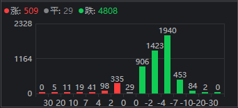 市场上有4800多只股票下跌,100多只股票下跌或下跌超过10%,只有500多只股票上涨。沪深股市今日成交额8459亿元,较上个交易日成交量1573亿元。