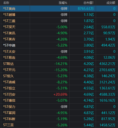 而且另一方面,市值最小的股票,TOP20中只有一只收涨。