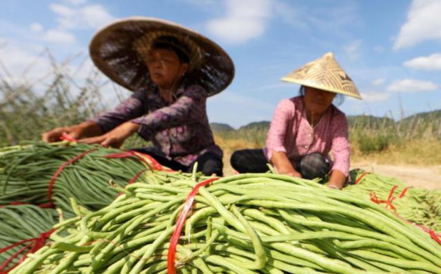 岑巩县水尾镇新场村,村民们把采摘的豇豆打包