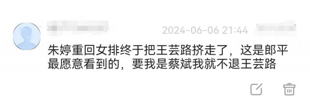 在中国女排公布名单后,有人评论说:朱婷回到女排,终于把王云邈挤出来了,这是郎平最愿意看到的。如果我是蔡斌,我不会退出王云邈。