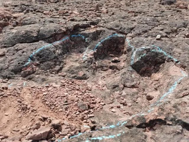 ▲现场发现的恐龙足迹化石(禄丰市媒体中心供图)