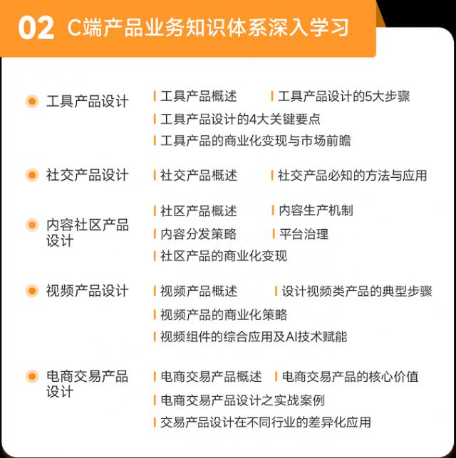构建符合市场需求的能力模型,通过视频、直播、答疑指导等全方位的学习支持,实现能力的突破。 C 端复合商品人才。