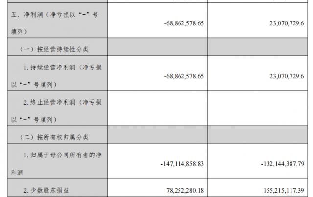 与期内相同,其净利润 5.58 亿、1.75 亿、2307.07 万、-6886.26 万;归母净利为 4.62 亿、1.01 亿、-1.32 亿、-1.47 亿,两个数据都在持续下降。