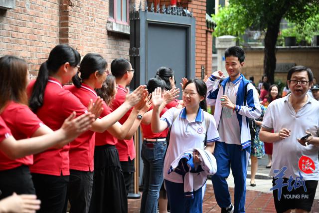 高考第一天,广州考生自信赴考。