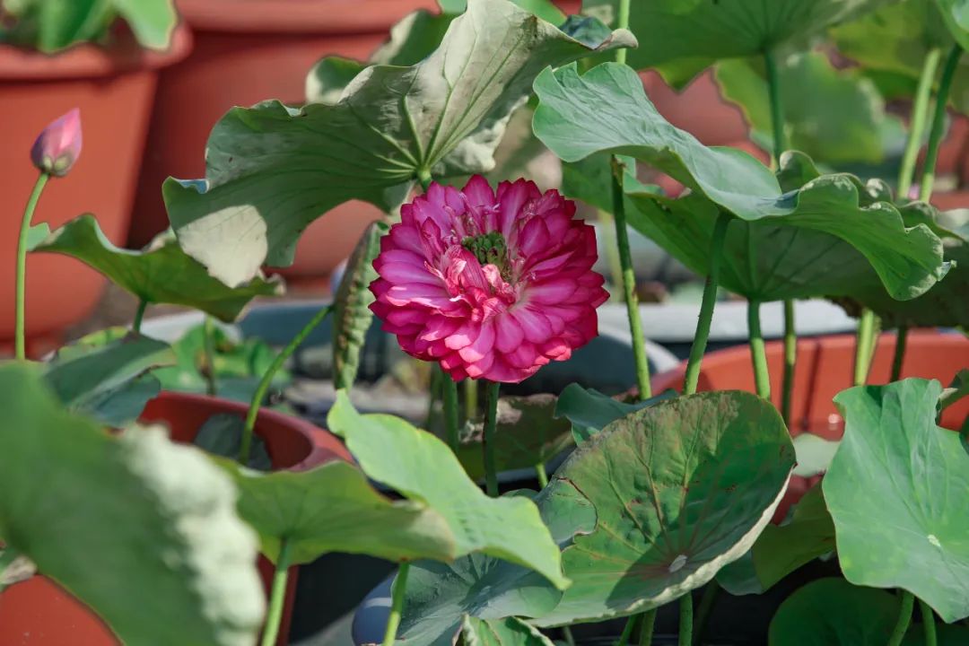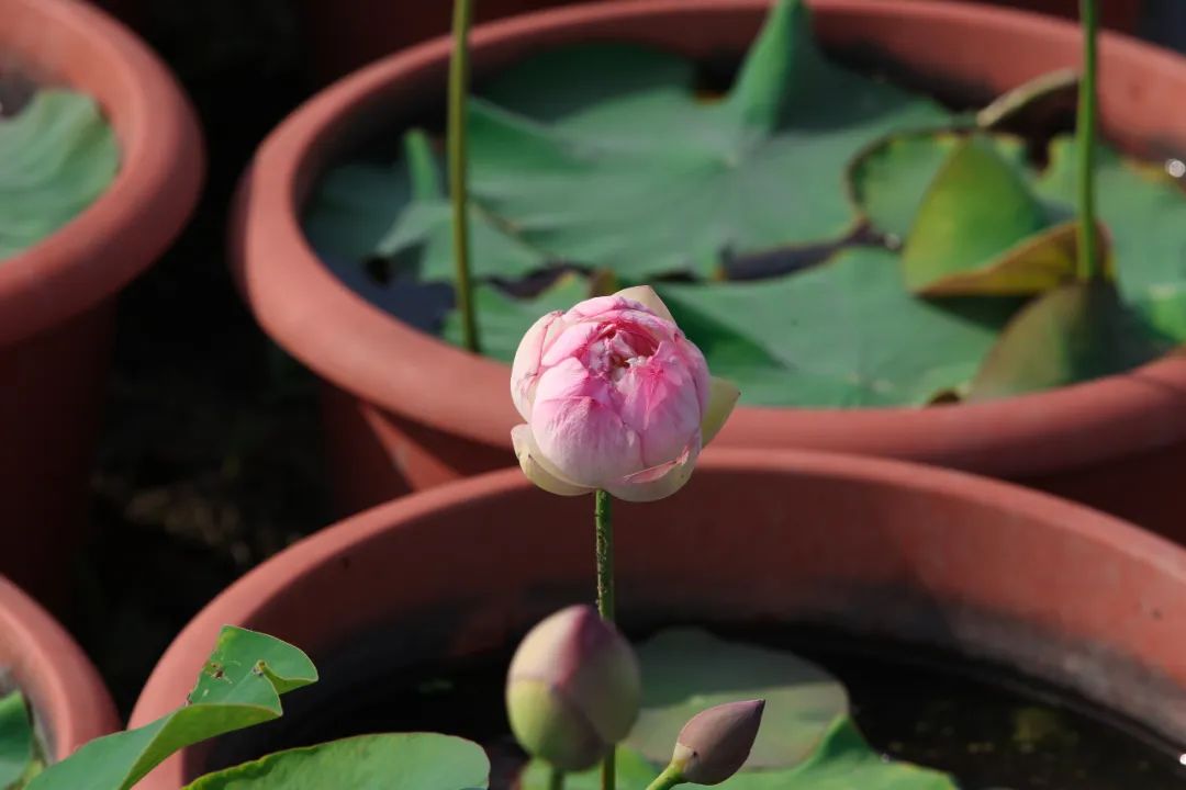 作为松江的赏荷名片,新邈荷花基地占地100多亩,种植了多种自育荷花品种,如“素衣藏翠”、“仁德莲”、“黄鸟”、“粉黛千羽”、“霜染红楼”等。其中有一些有价值的种类,分为盆栽和池栽。他说:“莲花每年六月初开花,随着气温的逐渐升高,开花量也会增加。”基地负责人朱斌说,目前盆栽荷花盛开,由于池内温度低于盆内温度,池内荷花开花大约需要一个星期。