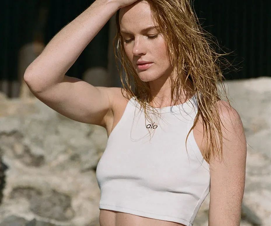 在上面提到的《华尔街日报》的文章中,Alo被赋予了“最能代表我们时代的搭配”的意义——穿着米色的Alo紧身衣和运动背心,搭配白色袜子和白色运动鞋,手里拿着一个巨大的水杯、iPhone和特斯拉钥匙扣,看起来就像一个耀眼的明星正在去洛杉矶流行的普拉提教室。