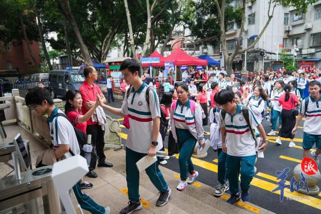 高考第一天,广州考生自信赴考。