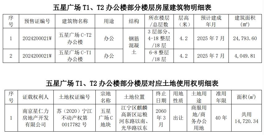 这个房产是南京五星广场T1、位于南京市江宁区麒麟高新区运粮河东路以南、光华路东侧的T2办公楼部分楼层房地产,现拥有方为星仁力房地产开发有限公司,买卖双方尚未签订相关协议,要求股东大会授权公司总经理及其授权人办理相关后续工作。