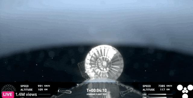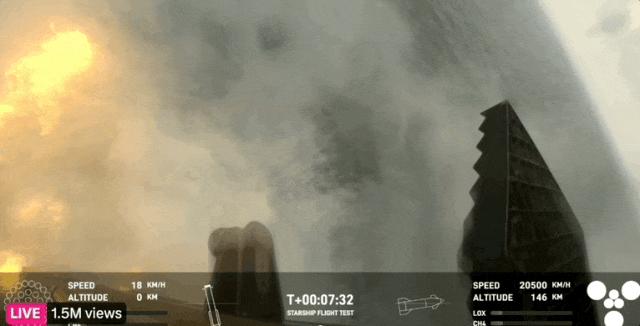 中途还中断了几次直播,即使恢复了也糊成一片,依靠星链提供信号。但是惊险是这次试飞的主旋律。