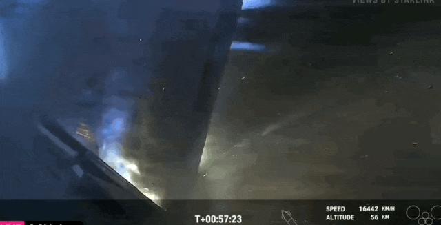 2023 年 11 月亮第二飞,发动机全部正常着火,起飞。 2 分 40 秒上下,一、二级第一次尝试热分离就成功了,但随后一级爆炸,二级继续航行一段时间后自毁。