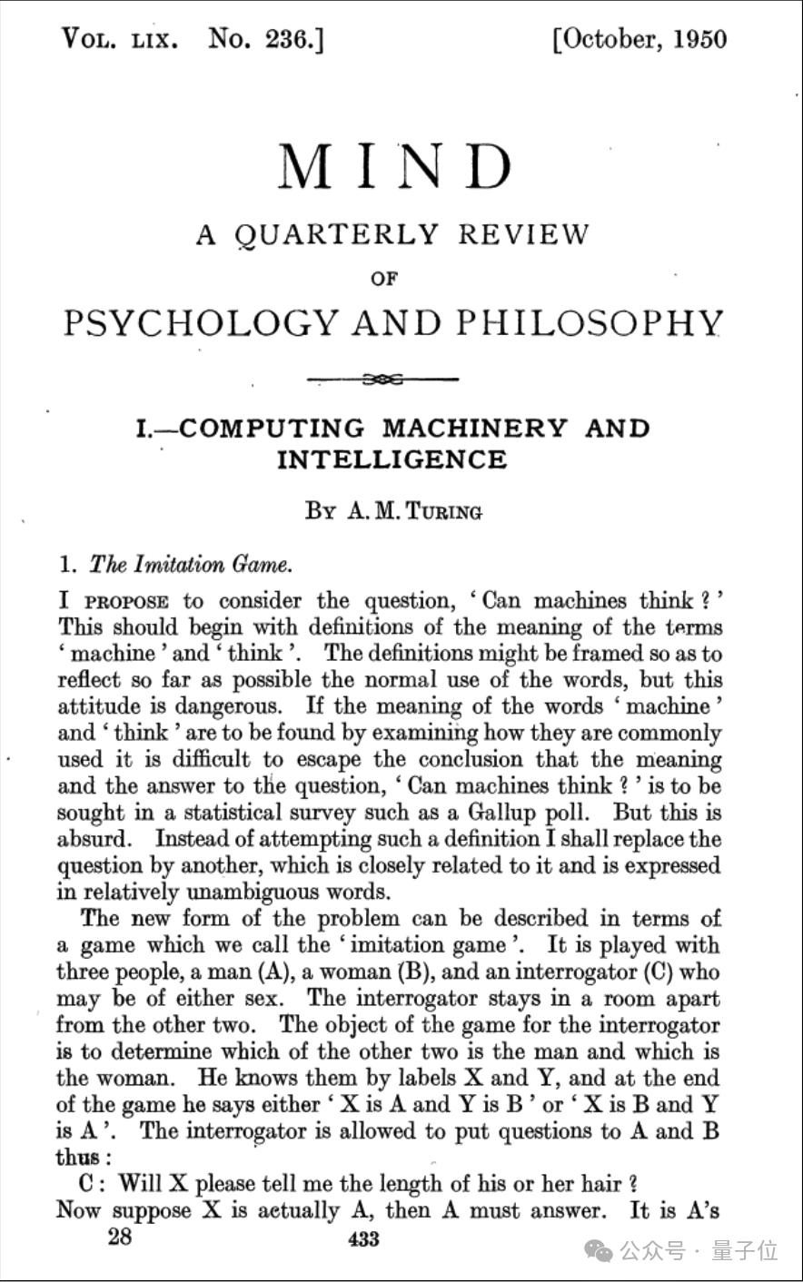 因此许多人认为图灵是受到杰弗逊的刺激才想到“图灵检测”的,这种说法很糟糕。图灵–1948(也就是说,图灵在1948年为NPL写了一份名为《智能机器》的报告)的结尾明确提出了模仿游戏。毫不夸张地说,图灵的整篇文章都是以杰弗逊为辩论对手或被教导的读者。