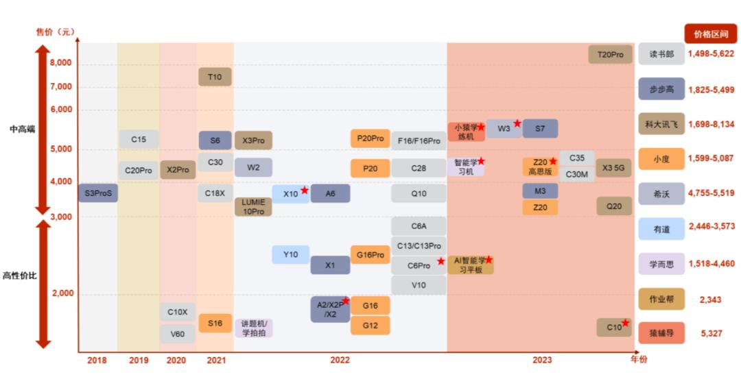 而且,伴随着AI大模型功能的加入,超高端学习机6000元以上的价格段商品,正迅速被市场所接受。