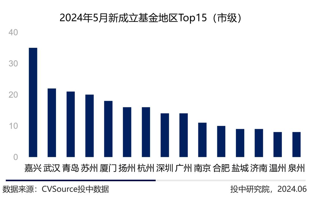 从地区分布来看,2024年5月,江苏省以80支超越浙江省78支成为本期基金新设省份第一。山东省新设基金数量排名第三,35支。苏浙领先,与其它省份差距较大。