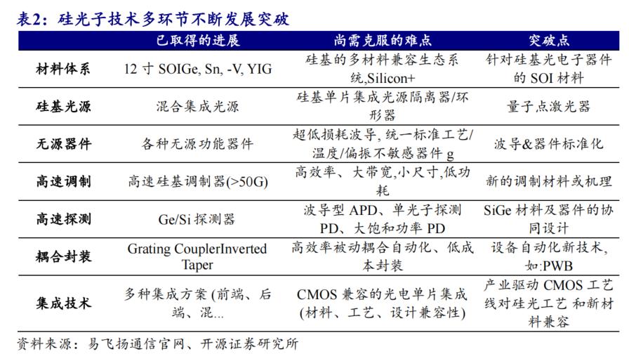 在名叫《AI 在高速时代,硅光子迎来成长机遇的深度研究报告中,分析人员从多个角度介绍了硅光子技术的近期进展。