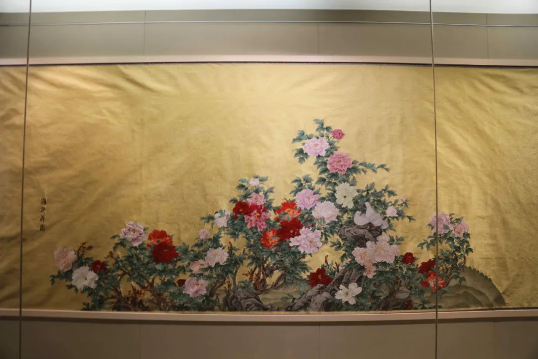 在这次穿越时空的经纬交织之旅中,一张《牡丹富贵图》特别引人注目。这部作品纺织紧密,背景均匀,线条自然过渡,花瓣层次分明,色彩丰富。据曹美姐说,这部作品长4.5米,高2.8米,用了100多种丝线,花了5年时间才完成。