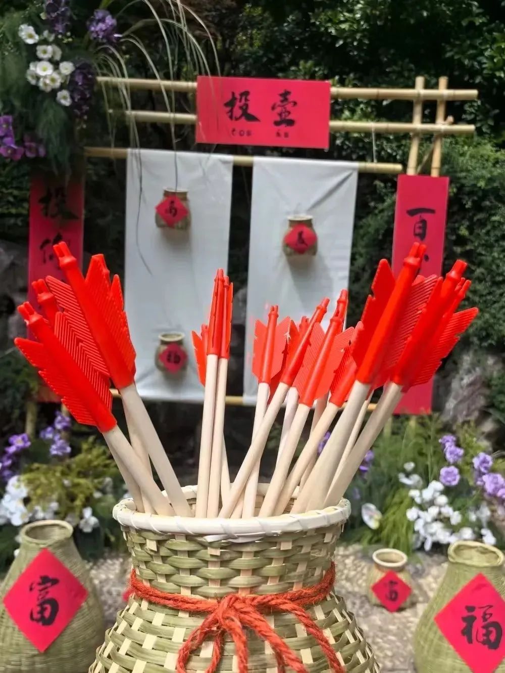 在古代,人们通常面临各种自然灾害和疾病的威胁。因此,他们相信,杀死代表疾病的“五毒”(蜈蚣、毒蛇、蝎子、壁虎、蟾蜍)可以驱逐凶鬼,保护自己和家人免受疾病的侵害。端午节用箭投射五毒,意味着没有疾病,没有灾难。