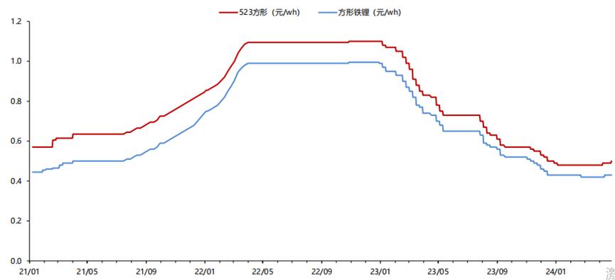 从行业角度来看,虽然2024年初动力电池价格仍保持23年下跌趋势,但进入4月份后,铁锂电池和低镍三元电池的价格基本稳定,部分厂商甚至出现涨价。一方面,由于目前碳酸锂价格已经跌至10万元/吨左右的成本价,后续下跌空间非常有限。