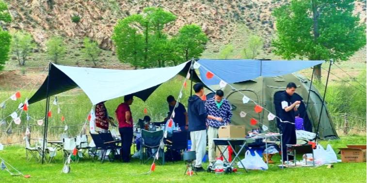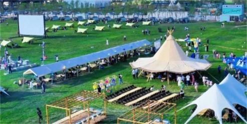 云羡露营地乌托邦小院位于大黑河郊野外公园,基地创造了一个独立的区域,是另一个世界,是一个虚幻、华丽、意想不到的空间。慵懒的下午茶、绵绵冰甜点、初夏小市场、BBQ串肉扦、烧鸟小吃、露天酒吧、狂欢音乐晚会、烟花秀等活动等着你去体验。