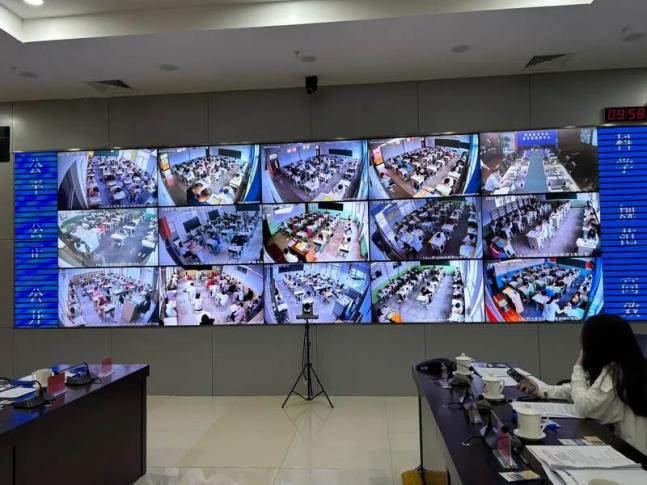 ▲山西省国际教育考试指挥中心现场监控大屏幕