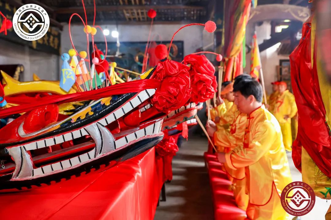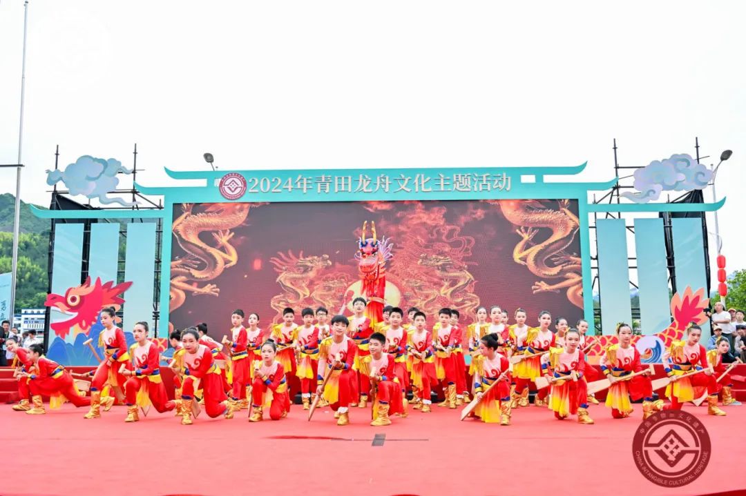 现场依次上演了《青田鱼灯舞》《青田百鸟灯》《波浪》《九州龙吟》等节目。经过一系列传统的非物质文化遗产仪式,如龙舟崇拜、沐浴礼物、画龙点睛、缠红等。,所有的龙舟都相继“进水”。