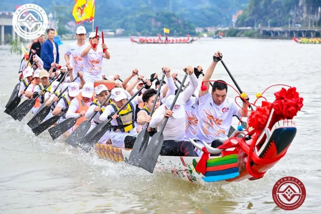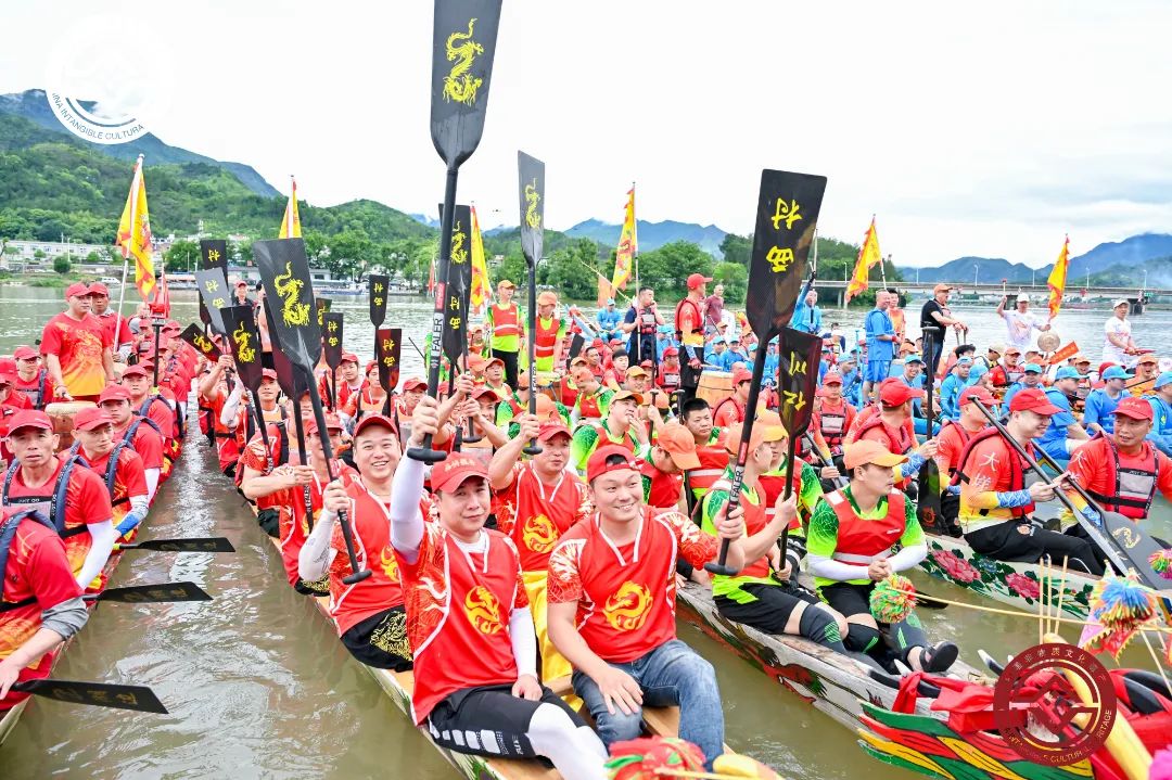 此外,当天还邀请了村民、龙舟队成员和游客参加“赏龙舟节、观龙舟节、品龙舟节、端午节”千人龙舟宴。