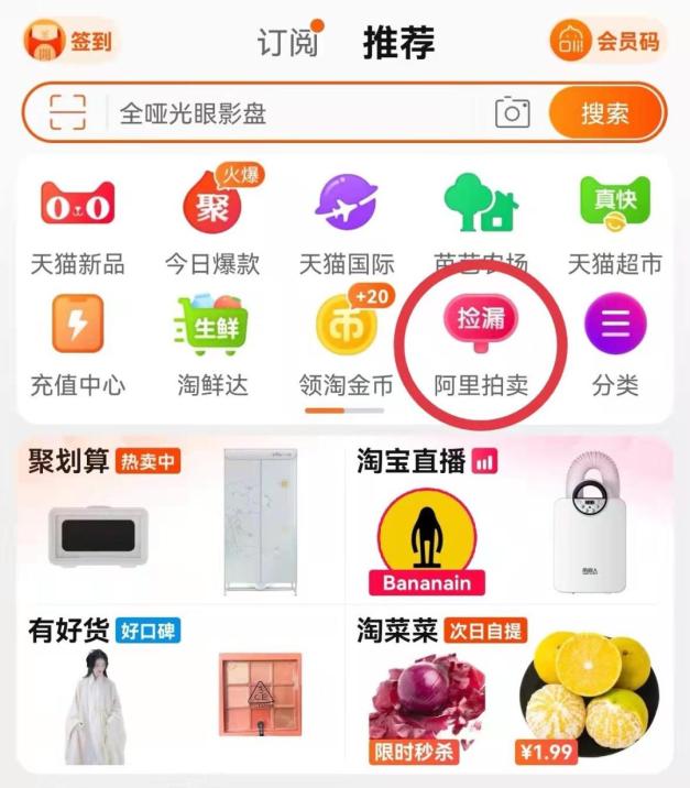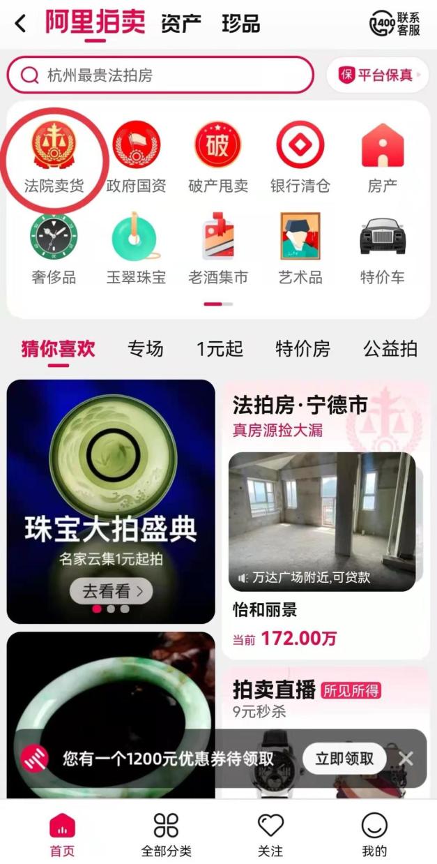 打开淘宝首页,点击“阿里拍卖”(如图)