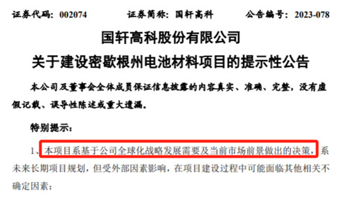 在宁德时代,国轩高科给出了上述回应,符合两者的全球发展战略。