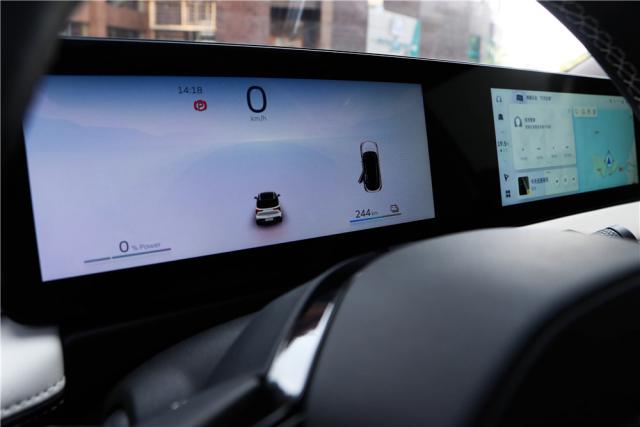 来到内饰,几何 E 整个内饰设计依然简洁,进入车内第一时间映入眼帘的就是 10.25 英寸双屏,左屏高配车型为 10.25 英尺,整体显示风格比较简单,但是可以清晰的展示各种信息。右边的屏幕标配 10.25 英寸中控屏,UI 接口和实际使用方面更时尚,清晰度高,唯一的缺点就是接触反馈不是特别流畅。