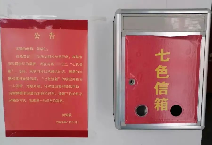 截至目前,“七色邮箱”已收到60多封来信,妥善解决了女生被校外男性骚扰、选择独立挤兑等7起纠纷。,并对3名未成年人进行了25次心理咨询,11次法治宣讲,300多本未成年人保护法等7种口袋书。