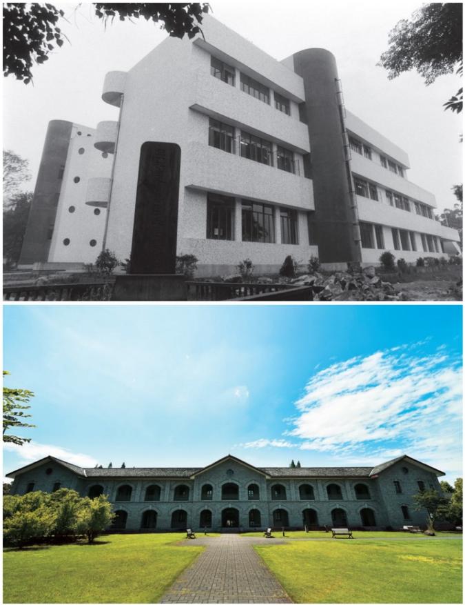 一九九二年的教学楼(图中),百年仰山楼(下图)在旧址上重建