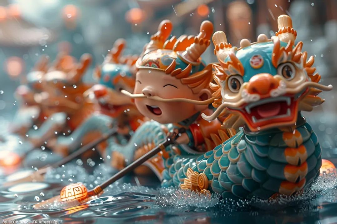 起源于楚国人为了纪念屈原而划船追逐。据说屈原投河后,楚国人担心河里的鱼会吃掉他的身体,所以划船驱散了鱼。这种习俗在吴、越、楚三国盛行,逐渐演变成多人集体划船的比赛。现代赛龙舟的船一般都是龙形的,上面画着龙纹,不仅表达了对龙的尊重,也象征着他们是龙的后代,是龙的传人。