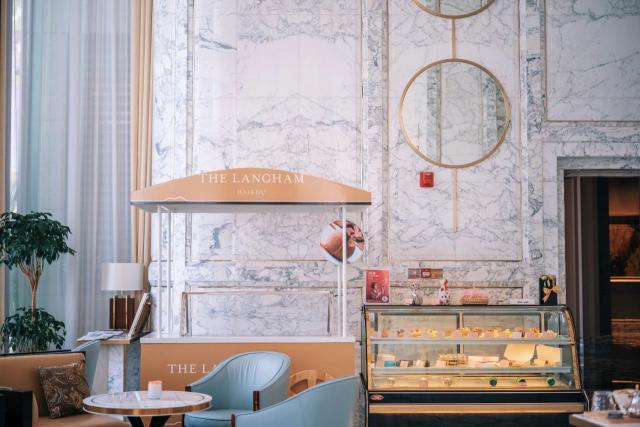 我也推荐朗廷的下午茶。使用的所有容器都是专门为朗廷定制的Wedgwood。【Langham Rose】款。