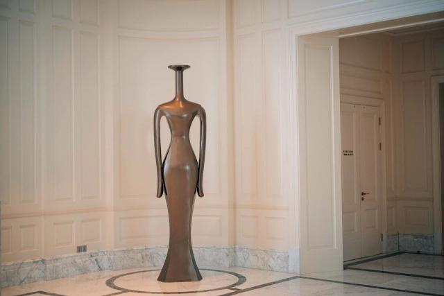 周围的金属嵌入板上雕刻着生长飘落的梅花叶和花瓣,各种各样,随着射灯的变化而变化。听说意味着一年四季交替变化。总之,挺好看的,也挺好看的。