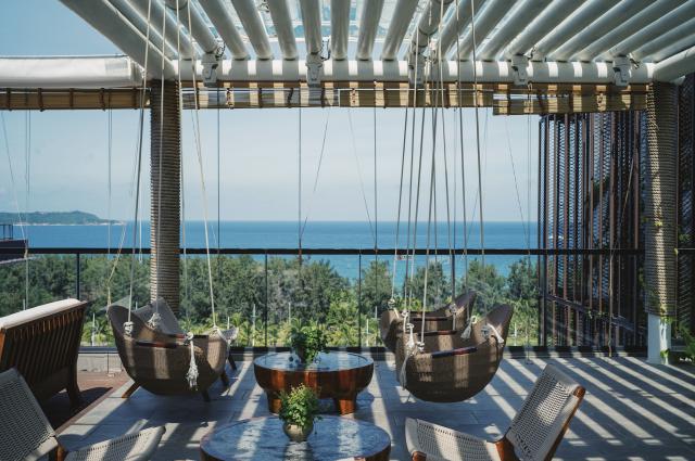 酒店顶层还有一个SKY。 BAR,它是一座秘密花园,将海棠湾的景色全部放入其中。与此同时,它还是一个室外空中庭院,充满了热带植物,看海的视角一流。