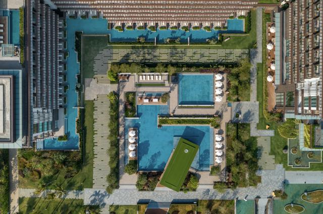 我一直认为,三亚这么多酒店的游泳池,一个酒店的这个天际游泳池是很有可能的。而且,这是一个室外恒温游泳池。