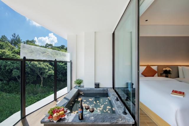 这是岭南商旅集团旗下的酒店品牌,于2023年开业。这家酒店最大的亮点就是一屋一汤,也就是所有的房间都有私汤。